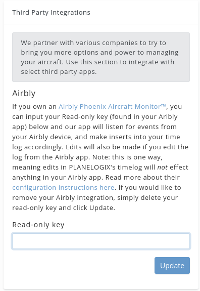 Follow these instructions to link your Airbly aircraft monitor to your Coflyt account. This process can be performed using your web browser and requires that you login to both your Airbly account and your Coflyt account. This process should take about 5 minutes to complete.